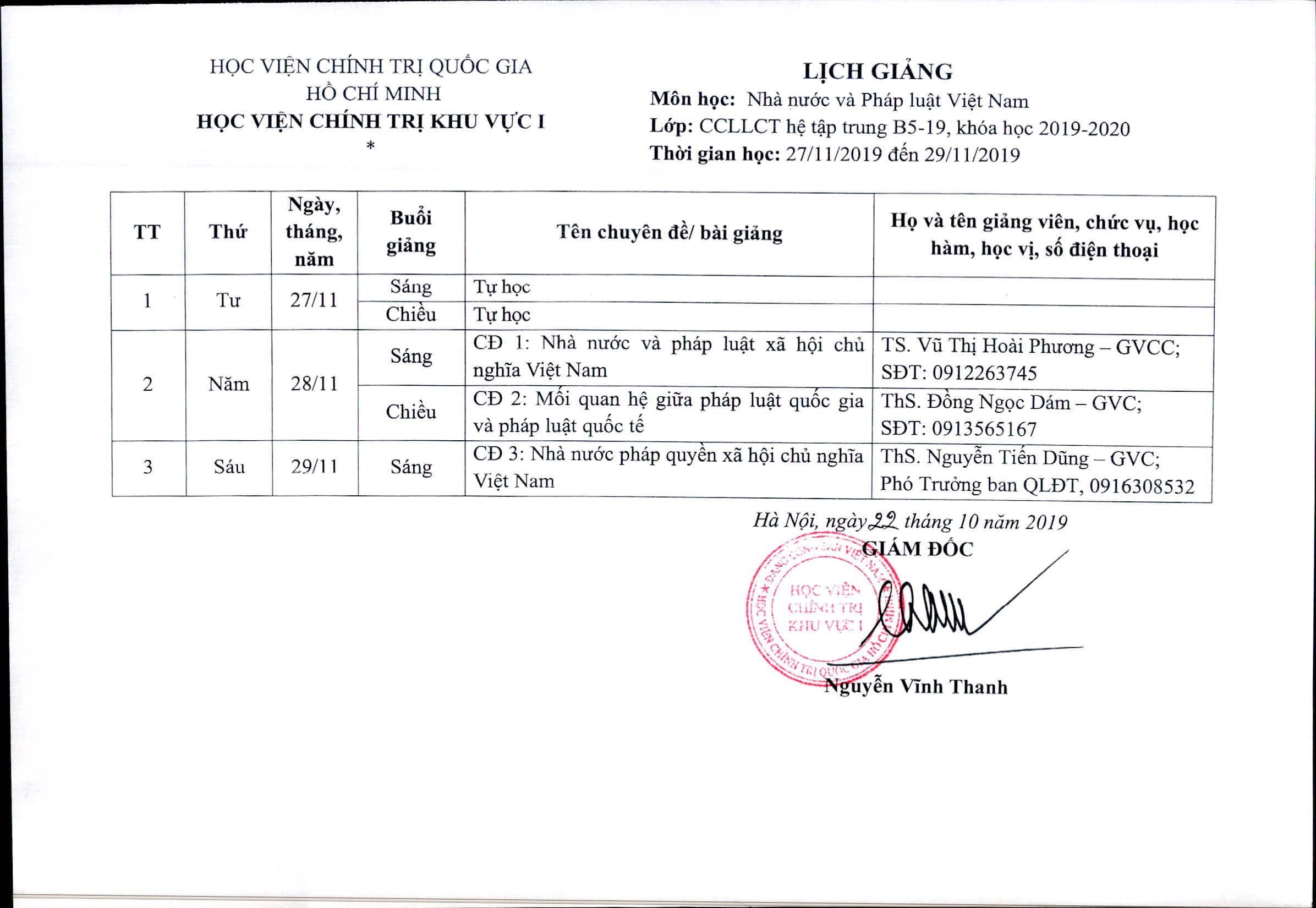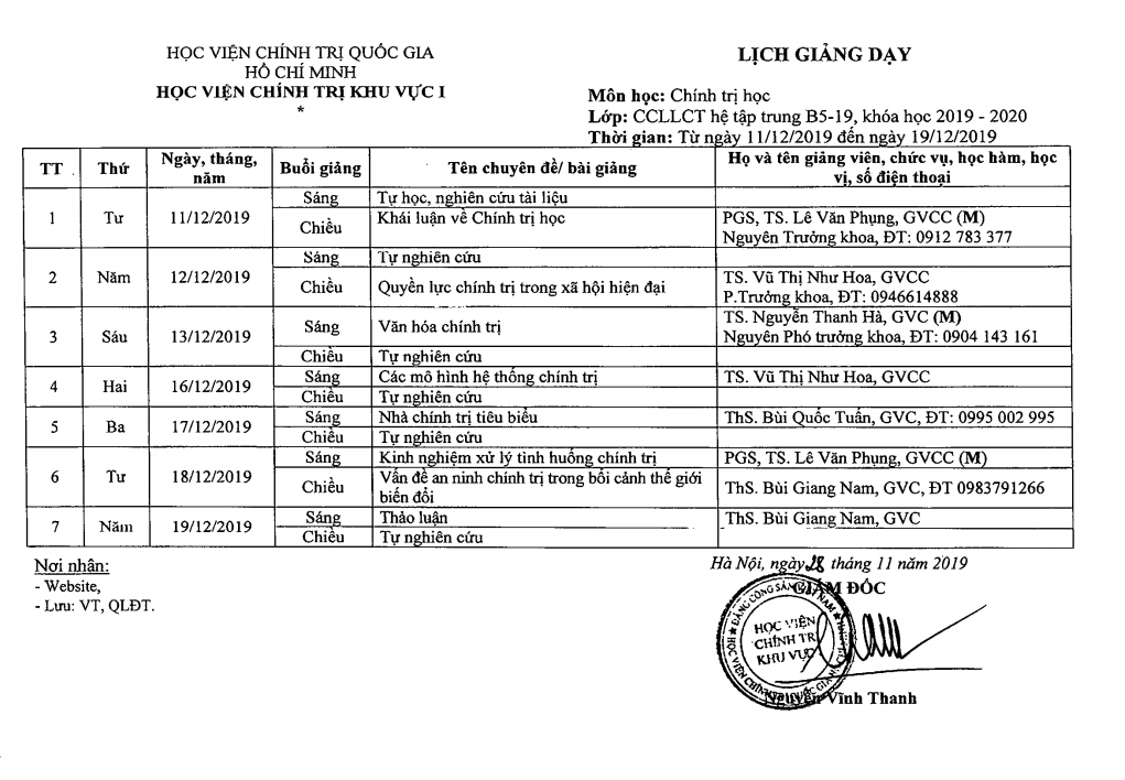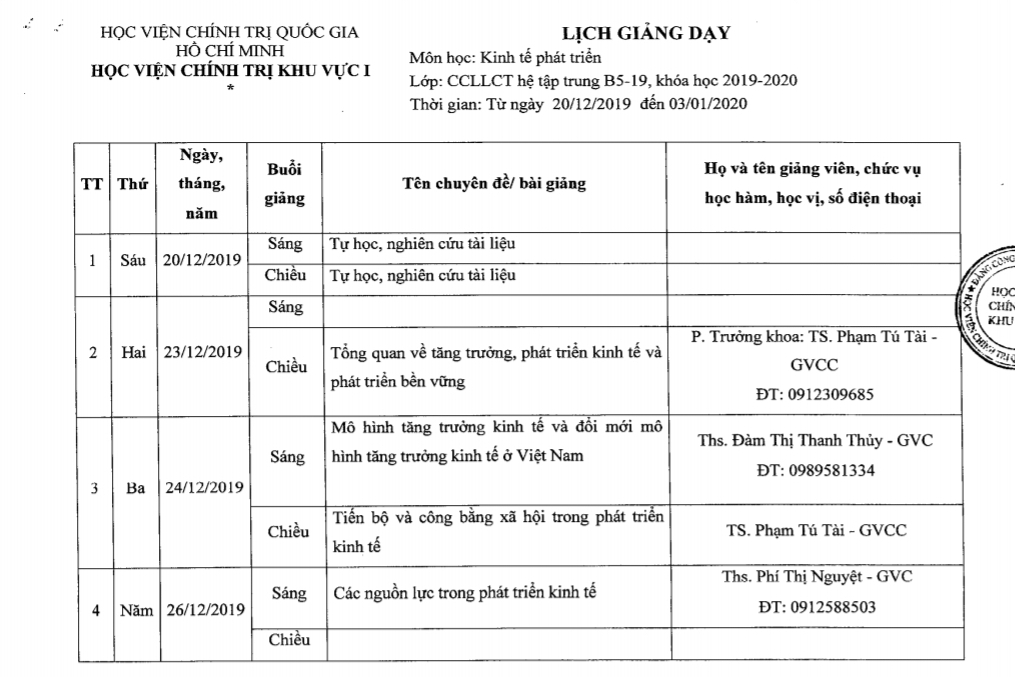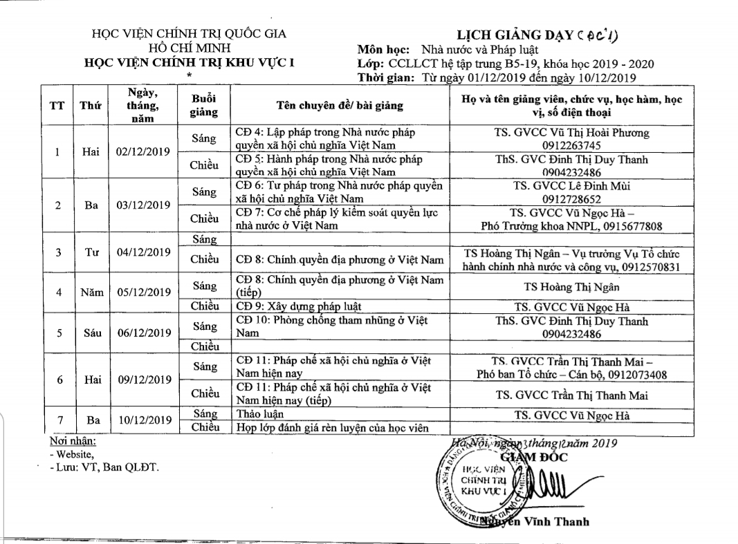Trang thông tin học tập, theo dơi điểm, thông báo, lịch học, lịch thi lớp B5-19 HVKV1